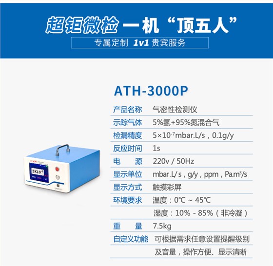 ATH-3000P 氮氢测漏仪空调整机气密性检测仪