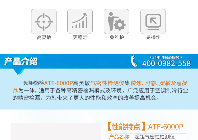 产品简介:主要检测R134a、R12、R22、R407c、R600a、 R404a、R410a、R417等卤素;